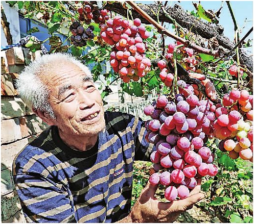 经开区老鸦庄镇流平寺村77岁老人周家春, 在自家的院落里种植的葡萄挂果,勤劳的老人高兴地讲,虽然一年四季忙个不停,但自己乐在其中,如今年岁已大,不求收入多少,只徒个老有所为,老有所乐,让身体在有价值的忙碌中硬朗起来,让自己的晚年生活在劳动中有滋有味。武殿森程双佳 摄(来源:张家口新闻网)