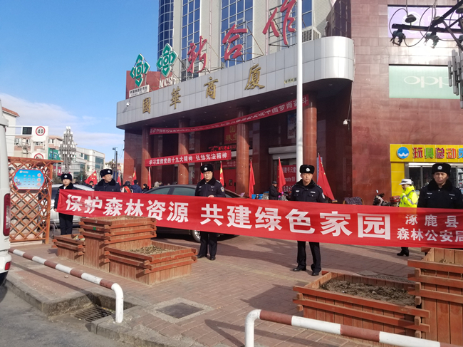 12月4日上午10点,涿鹿县森林公安局王晓黎局长带领该局一行数人在县国华商厦门口开展了法制宣传活动。