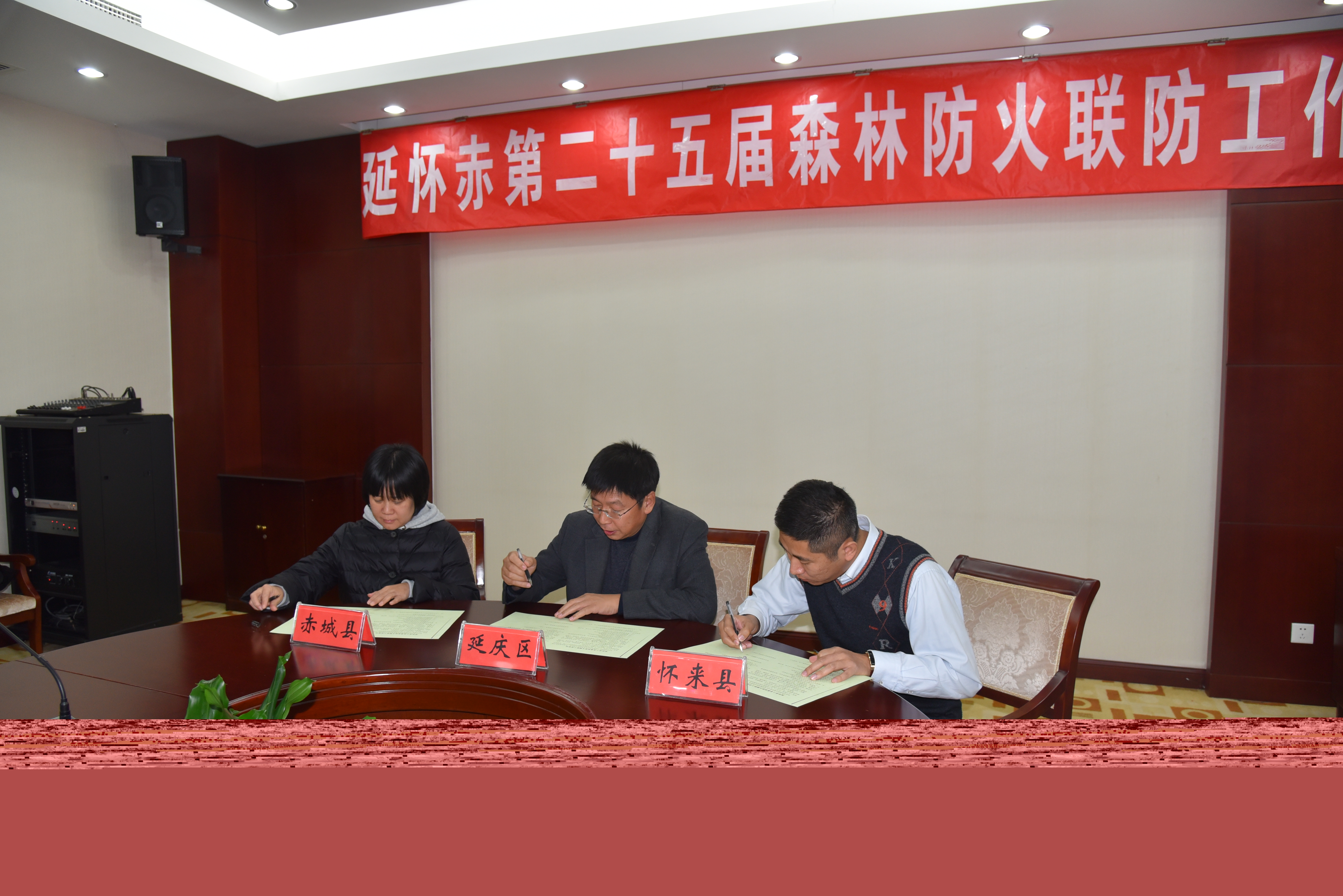 会上,三县区政府主管领导签订了《赤延怀森林防火联防工作协议》,三县区森林公安局局长就各县区2017年森林防火工作分别进行了发言和交流。